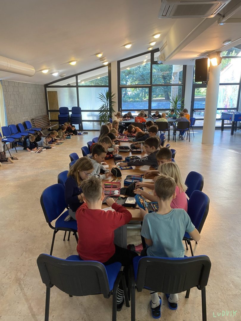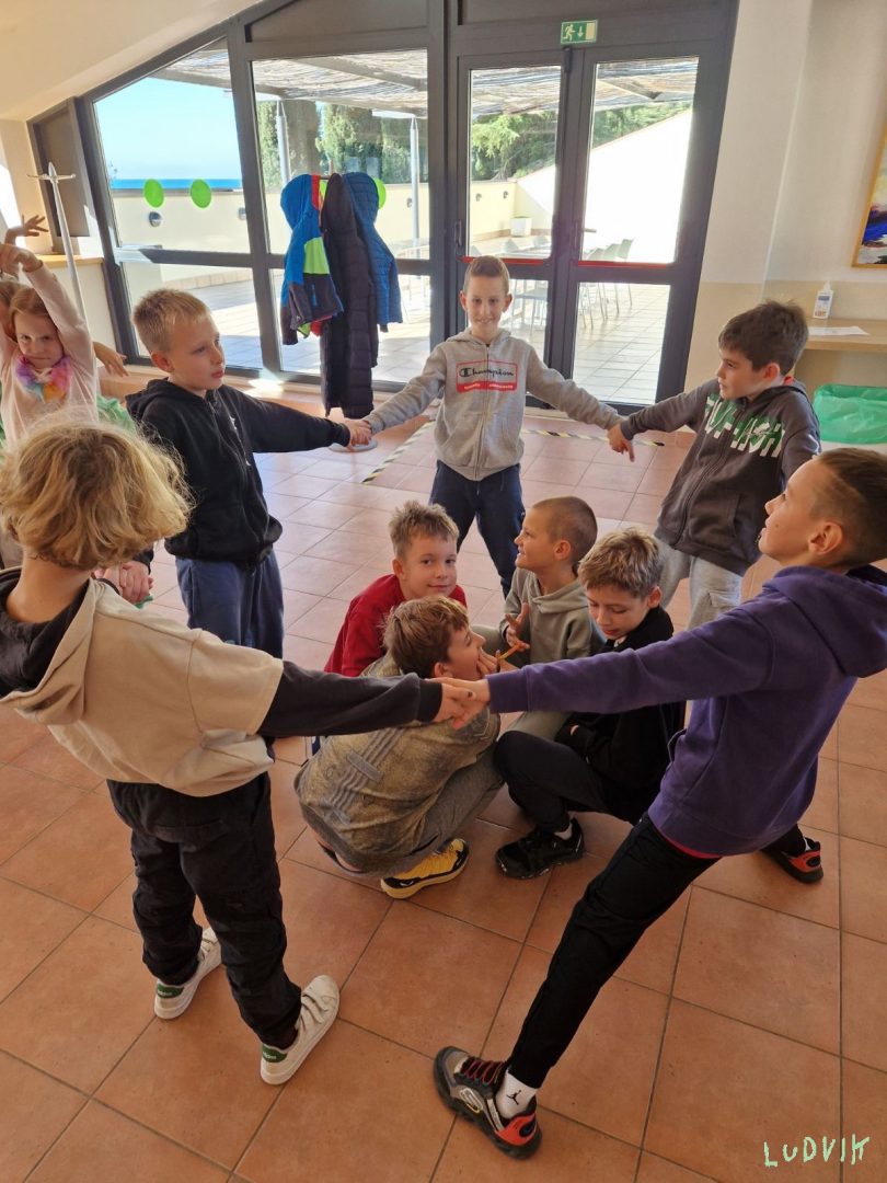 Ura je prehitro zvonila, v bazen nas napodila. Vsak dan premagujemo dolžine, skačemo na glavo z višine. Pozdrave smo domov poslali, razglednice napisali. Sonce nas je zvabilo na plažo, kjer smo školjke iskali in kamenje v morje metali. Na koncu dneva smo še eno nogometno tekmo odigrali, da smo pravi Ludviki, smo dokazali.
