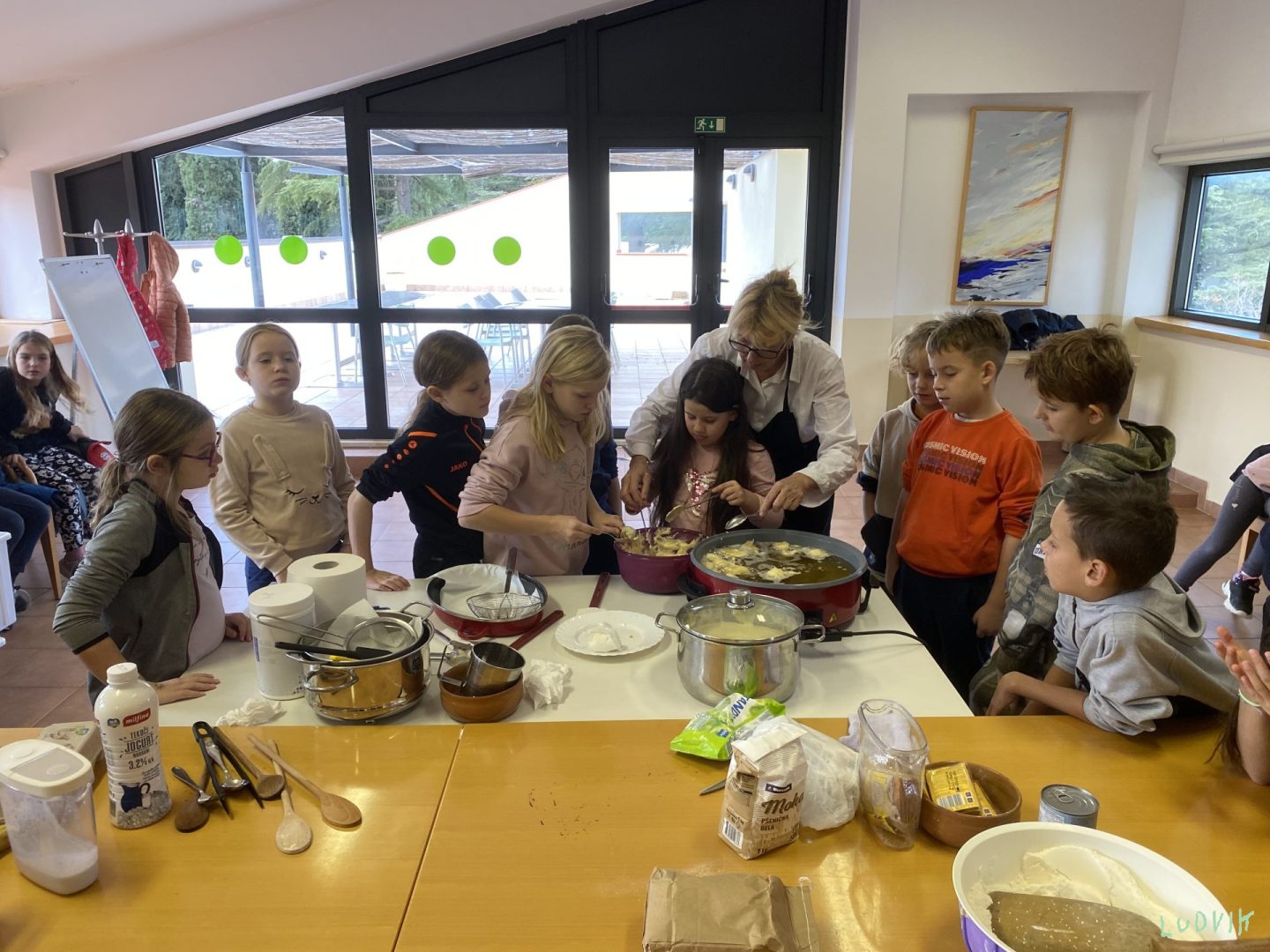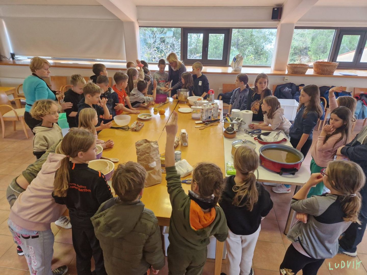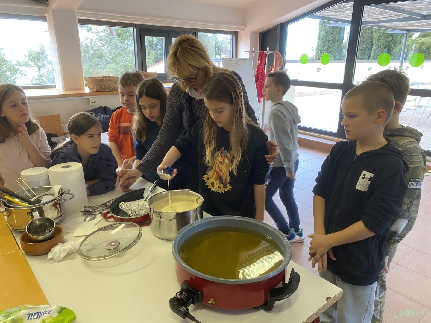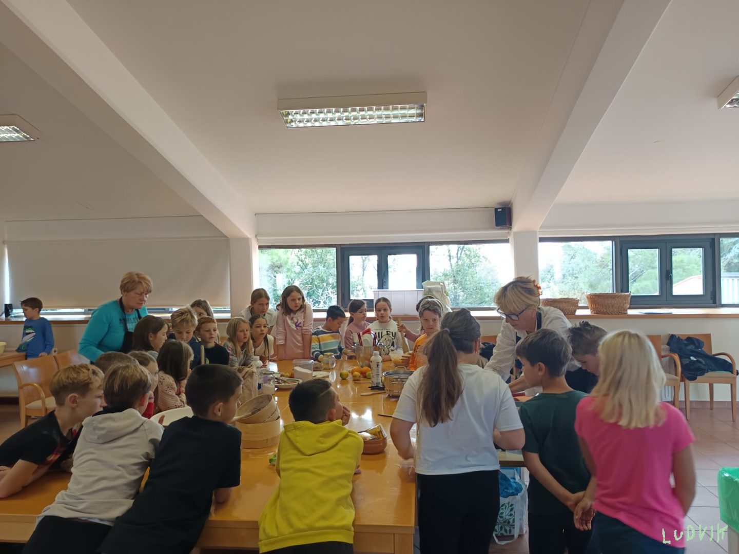 Močna burja nas je danes prebudila, učiteljica na hodniku je zavpila: “Gremo na zajtrk nabrat si moči, da bomo spet super plavali!” Po plavanju smo zavihali rokave, sami smo si malico naredili, ob fritulah sline cedili. Popoldan smo po letovišču iskali zaklad, komaj čakamo, da gremo spat. Kljub temu, da se lepo imamo, komaj čakamo, da v domač objem se podamo.